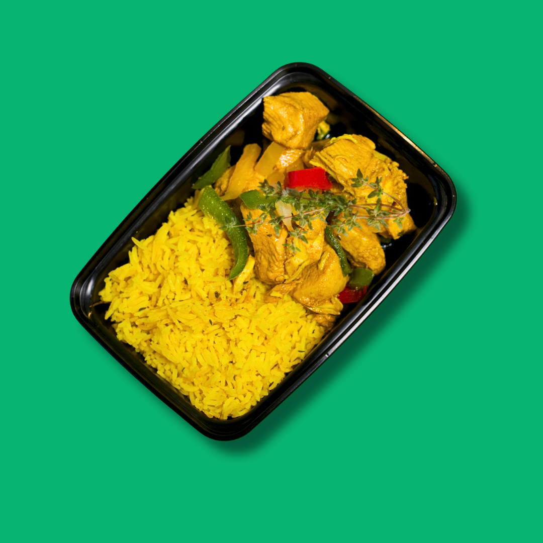 Cubed boneless chicken breast seasoned with curry and our all-purpose seasoning marinated cooked to perfect tenderness. Gluten-free.